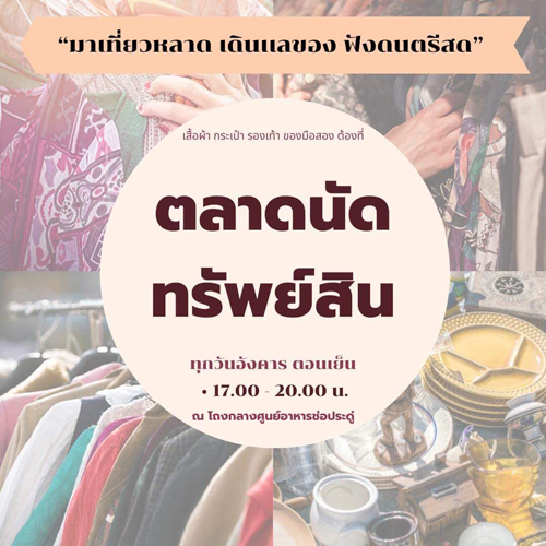 เพื่อเป็นการรณรงค์การใช้ทรัพยากรธรรมชาติอย่างรู้คุณค่า ศูนย์บริหารทรัพย์สิน จัดโครงการ “ตลาดนัดสินค้ามือสอง” ขึ้น โดยส่งเสริมและสนับสนุนให้นักศึกษาและบุคลากรภายในมหาวิทยาลัยฯ นำสิ่งของเหลือใช้ เสื้อผ้า รองเท้า เครื่องประดับ หรือวัสดุ อุปกรณ์ต่าง ๆ ที่ยังสามารถใช้งานได้แต่ไม่ได้ใช้ นำมาแลกเปลี่ยนและขายกัน ซึ่งจากการจัดกิจกรรมดังกล่าว มีนักศึกษาและบุคลากรในมหาวิทยาลัยฯ ให้ความสนใจเข้าร่วมโครงการฯ กว่า 24 ร้าน โครงการ “ตลาดนัดทรัพย์สิน สินค้ามือสอง” ซึ่งจัดที่ศูนย์อาหารช่อประดู่ โดยศูนย์บริหารทรัพย์สิน จัดประจำทุก วันอังคาร เพื่อส่งเสริมและสนับสนุนให้นักศึกษาและบุคลากรภายในมหาวิทยาลัยฯ ได้ใช้ทรัพยากรธรรมชาติอย่างรู้คุณค่า และเกิดการรายได้หมุนเวียน และยังเป็นช่องทางสนับสนุนให้กับนักศึกษากลุ่มที่สนใจหารายได้อีกช่องทางนึง