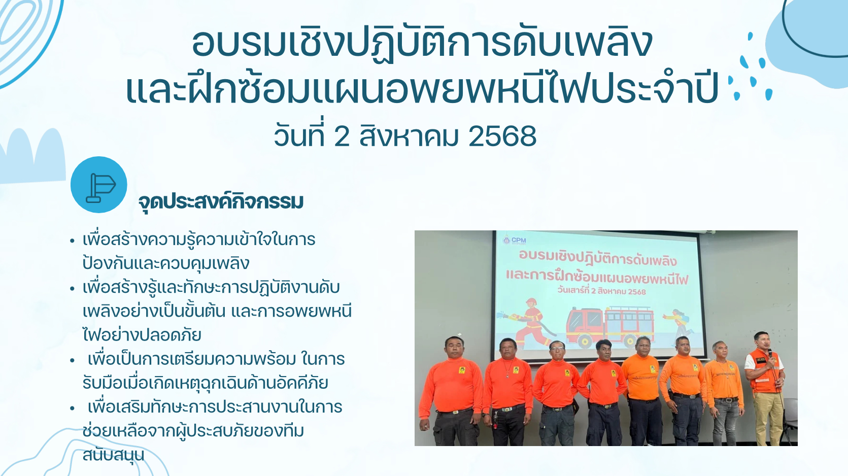 - การซ้อมอพยพหนีไฟอย่างเป็นระบบ