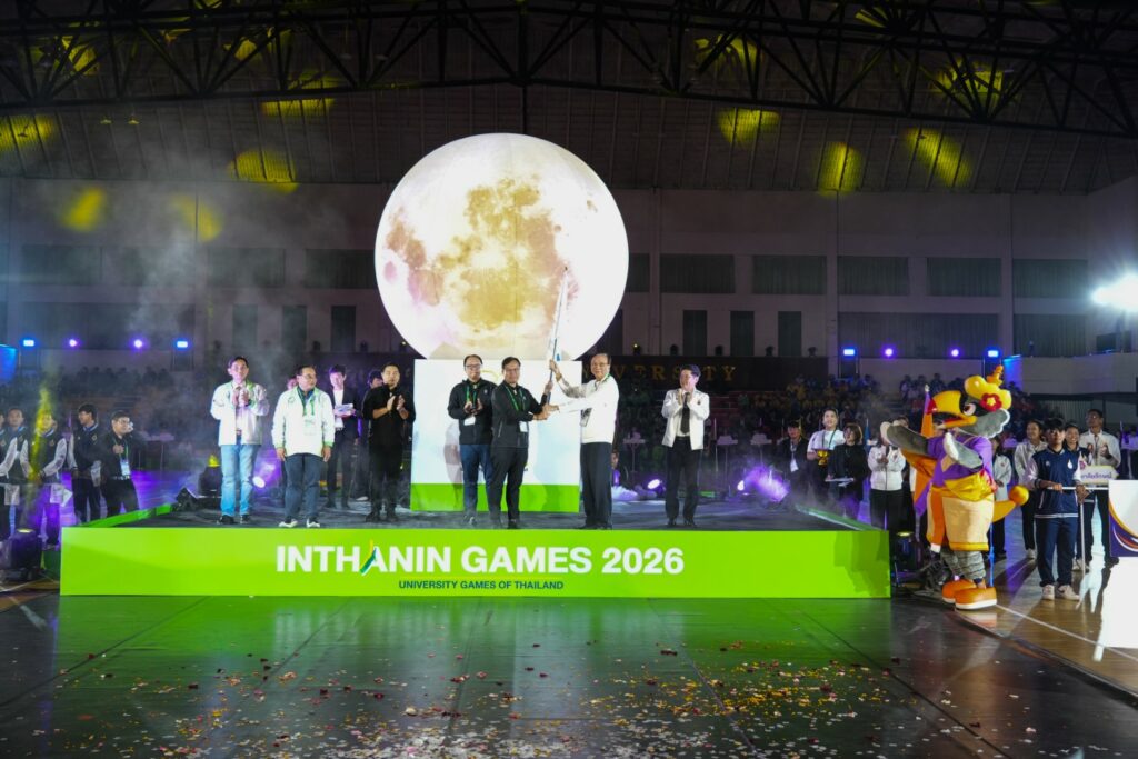 เมื่อวันที่ 9 มกราคม 2569 ศาสตราจารย์ ดร.สมบัติ ธำรงธัญวงศ์ อธิการบดีมหาวิทยาลัยวลัยลักษณ์ นำคณะผู้บริหาร บุคลากร และนักศึกษาของมหาวิทยาลัย เข้ารับมอบธงเจ้าภาพการแข่งขันกีฬามหาวิทยาลัยแห่งประเทศไทย ครั้งที่ 52 จาก รองศาสตราจารย์ ดร.ชูสิทธิ์ ประดับเพ็ชร์ ประธานคณะกรรมการกีฬามหาวิทยาลัยแห่งประเทศไทย และ รองศาสตราจารย์ ดร.วีระพล ทองมา อธิการบดีมหาวิทยาลัยแม่โจ้ ภายในพิธีเปิดการแข่งขันกีฬามหาวิทยาลัยแห่งประเทศไทย ครั้งที่ 51 “อินทนิลเกมส์” ณ ศูนย์กีฬาเฉลิมพระเกียรติ มหาวิทยาลัยแม่โจ้ จังหวัดเชียงใหม่